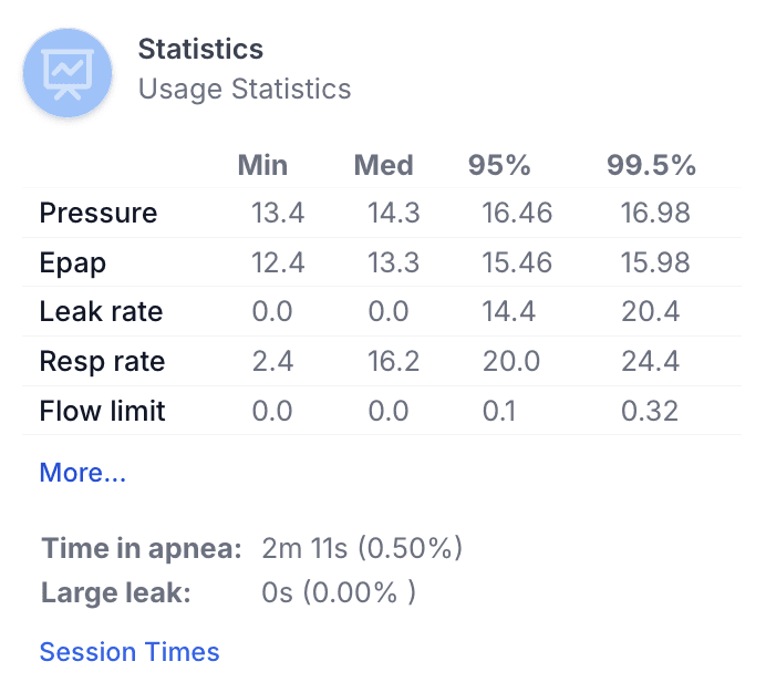 Thanks to SleepHQ’s academy course, within a short time I had a reasonable understanding of what the data was telling me. Due to cellphone coverage, my sleep clinicians can’t track my progress, but thanks to SleepHQ, I can.
